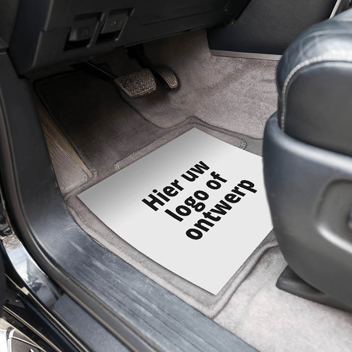 Leg na een onderhoudbeurt deze papieren vloermat in de auto met jouw eigen reclame